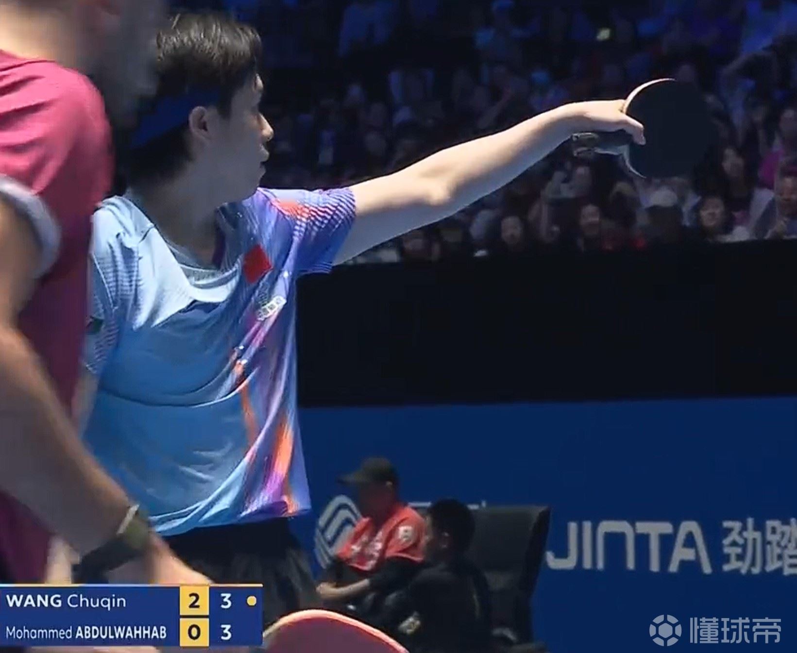 比赛中,王楚钦在发球时被看台上的闪光灯干扰,随后他直接指出赛场不文明行为。