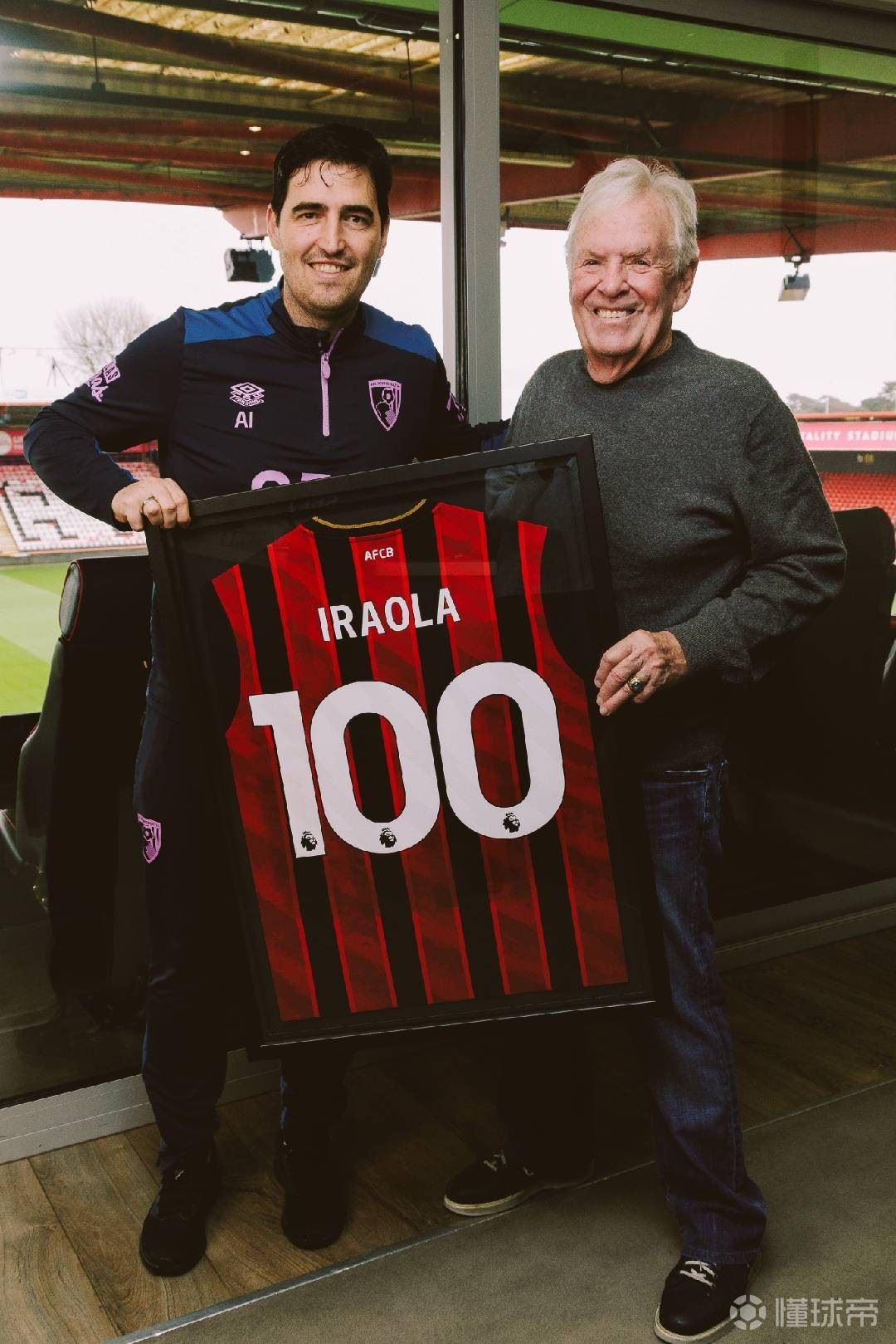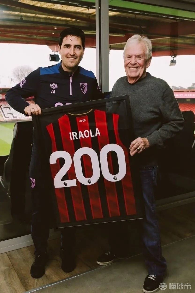 日前,伯恩茅斯官方在社交媒体上发布一则动态,主席比尔-弗利为主帅伊劳拉送上了一件100场纪念球衣。