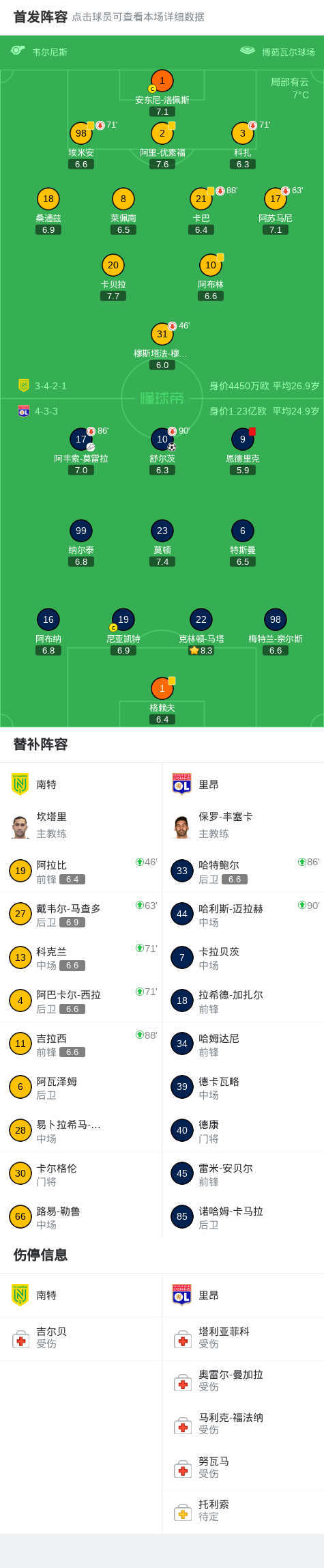 北京时间2月8日法国足球顶级联赛 联赛 第21轮,南特主场对阵里昂。里昂舒尔茨破门。最终比分南特 0-1 里昂。