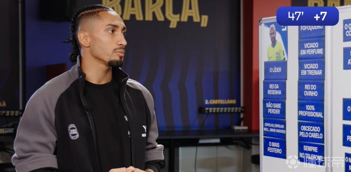 拉菲尼亚:不,对我来说是我自己,因为我听我喜欢的音乐,对吧?其他人的话,比如说,亚马尔、内马尔、维尼修斯……