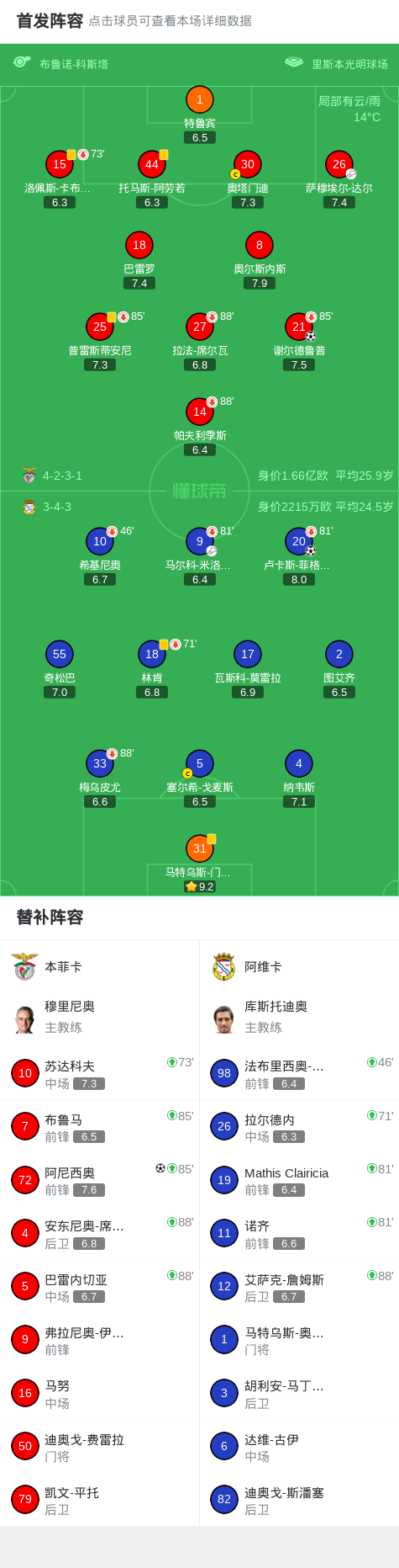 第86分钟,本菲卡球员萨穆埃尔-达尔助攻阿尼西奥打入一球。