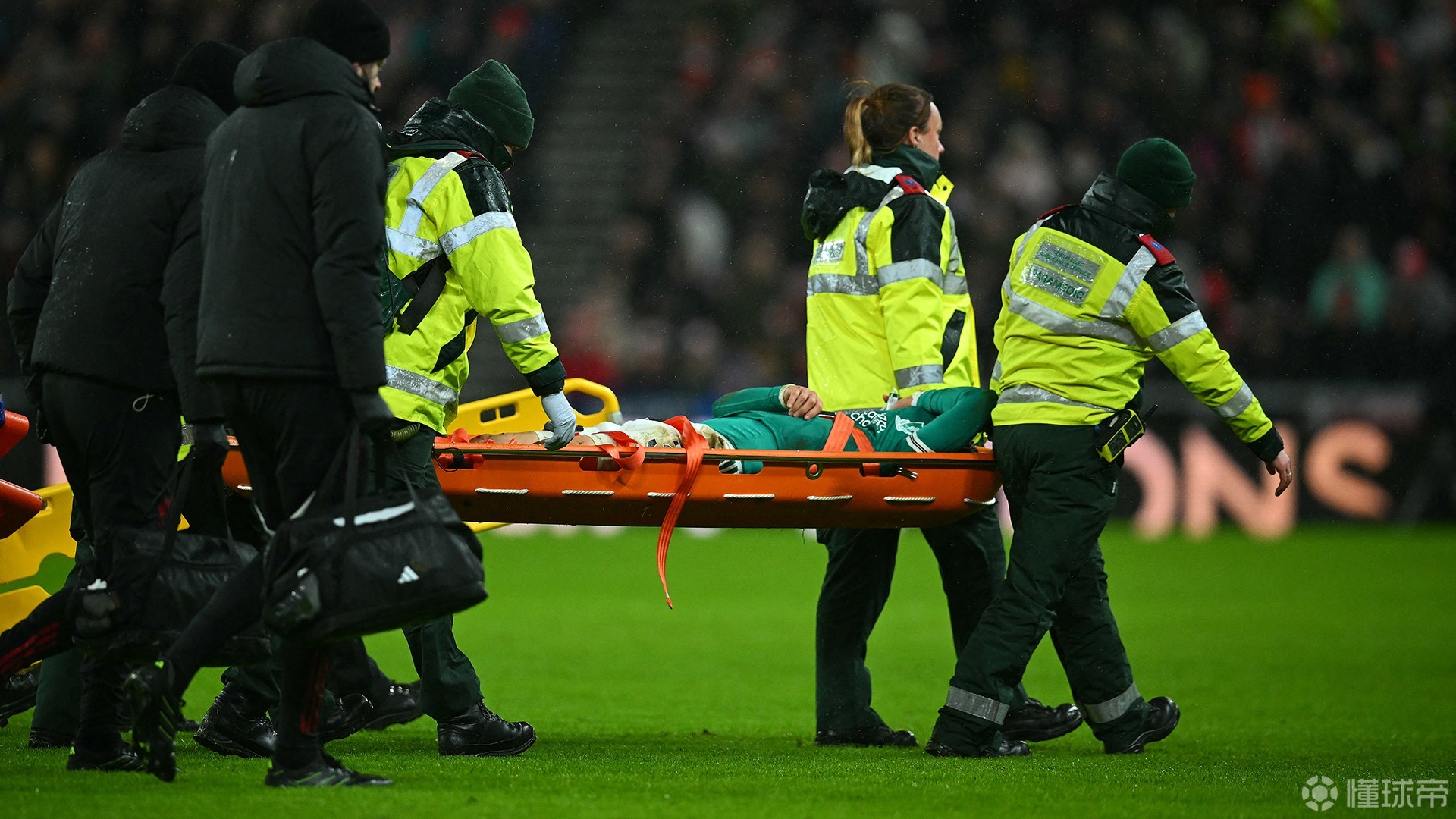 比赛中,远藤航试图解围左侧传中时,左脚被草皮绊倒,导致左踝关节严重扭伤,之后他被担架抬下球场,下场时,远藤航捂着面部,看上去受伤非常严重。