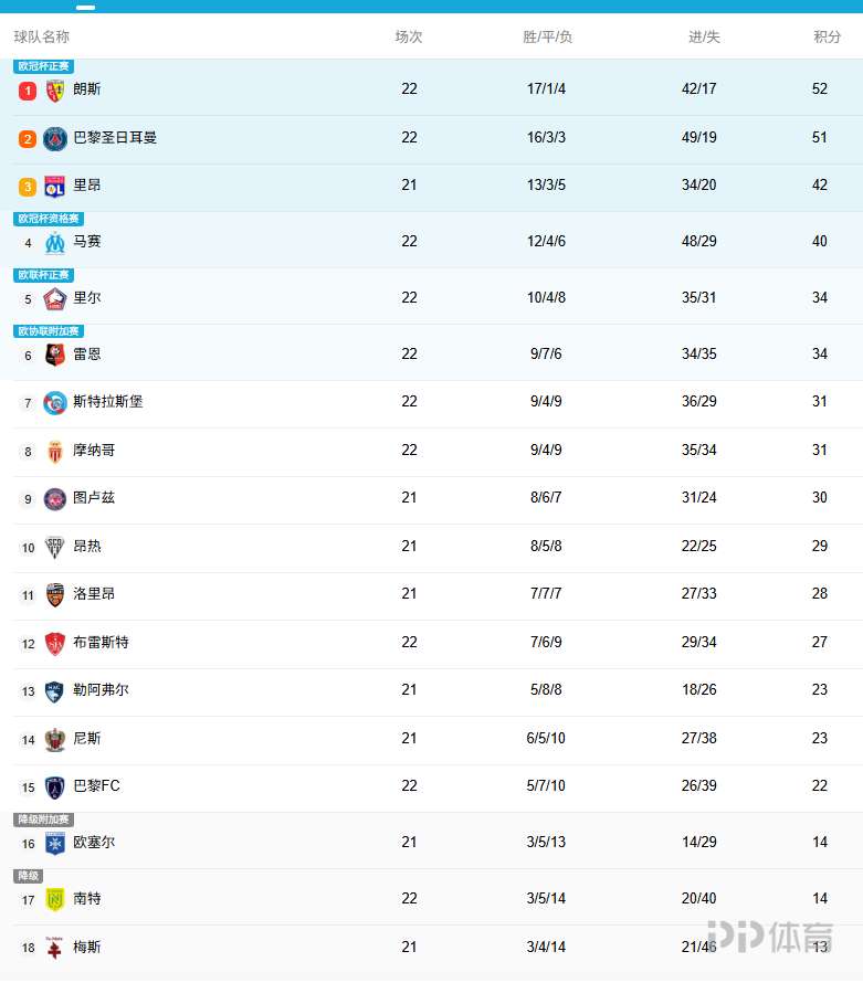 法甲第22轮,朗斯客场5-0大胜巴黎FC,收获联赛三连胜并登顶法甲联赛积分榜。