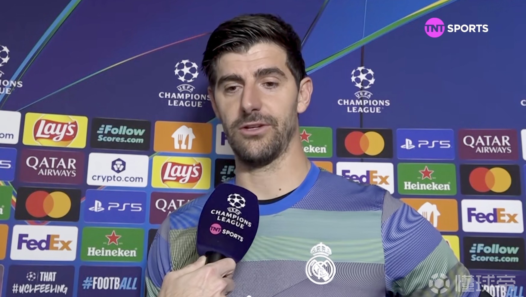 欧冠淘汰赛附加赛首回合,皇马客场1-0战胜本菲卡,皇马门将库尔图瓦赛后接受了TNT体育墨西哥频道的采访。