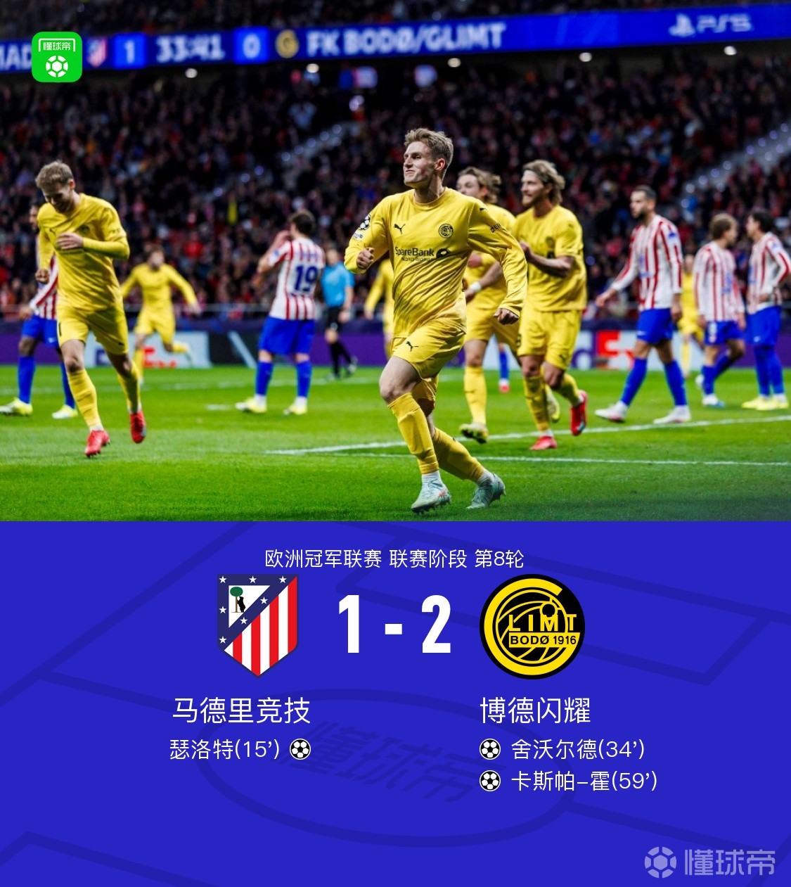 • 马竞1-2遭博德闪耀逆转,两队均战附加赛,卡斯帕-霍制胜
