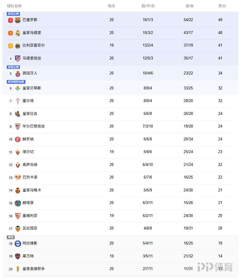 • 西甲积分榜:巴萨9连胜止步,领先第二皇马1分