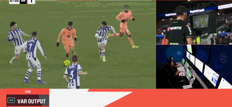 • 半场战报:巴萨0-1皇社,奥亚萨瓦尔凌空斩,两队4个进球被吹