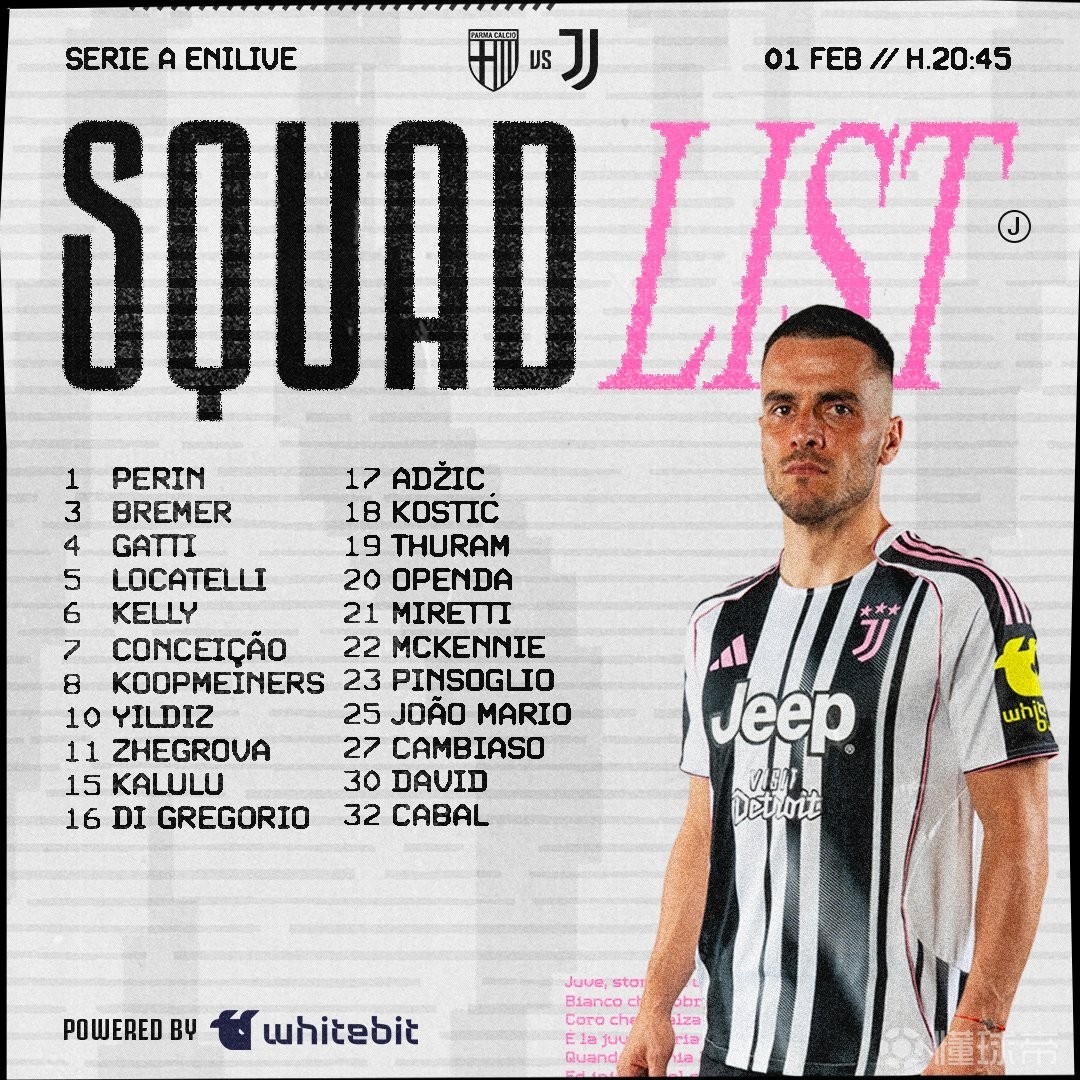 • 尤文客战帕尔马名单:伊尔迪兹、布雷默领衔,库普、戴维在列