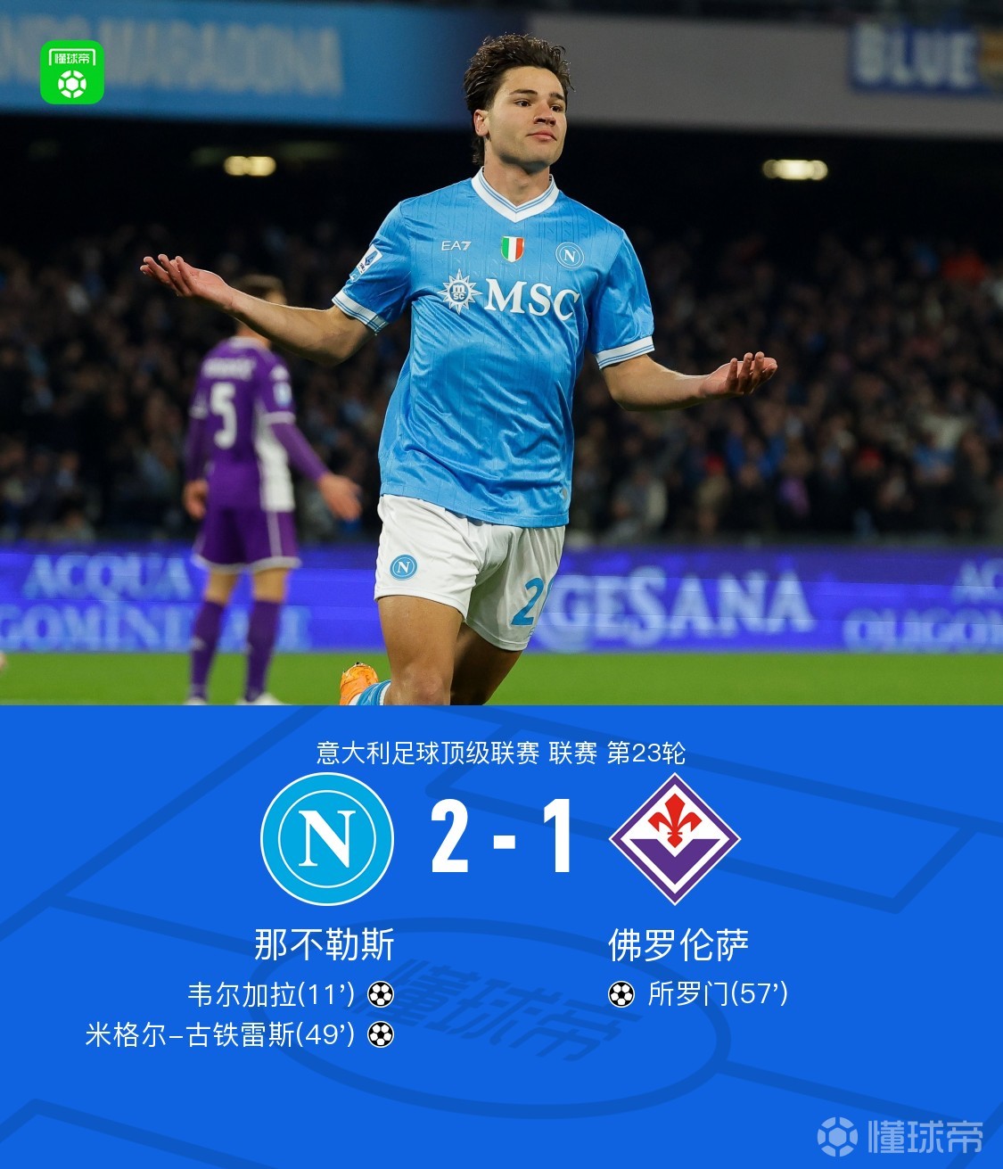 • 那不勒斯2-1佛罗伦萨,韦尔加拉、古铁雷斯建功